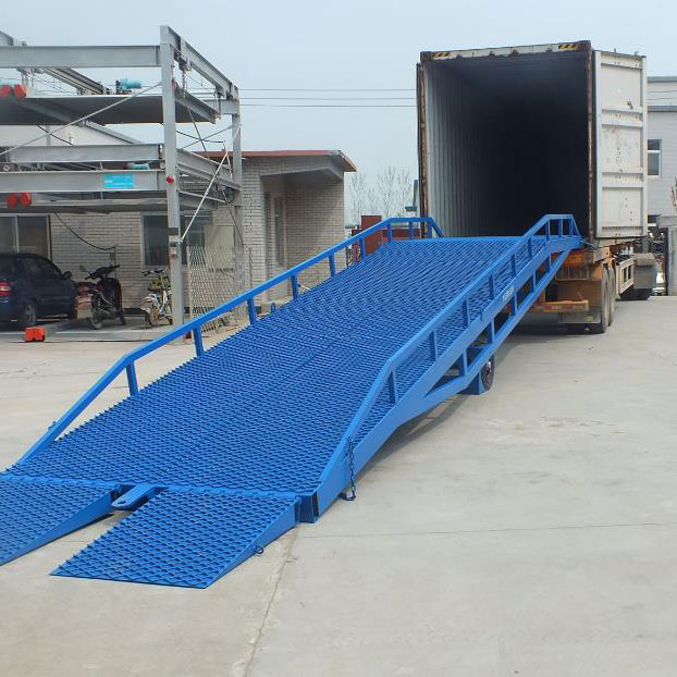 移動式液壓登車橋:是實現(xiàn)貨物快速裝卸的專用輔助設備,它的高度調(diào)節(jié)功能使貨車與地面之間架起一座橋梁,叉車等搬運車輛通過它能直接駛?cè)胴涇噧?nèi)部進行貨物的批量裝卸,僅需單人作業(yè),即可實現(xiàn)貨物的快速裝卸。